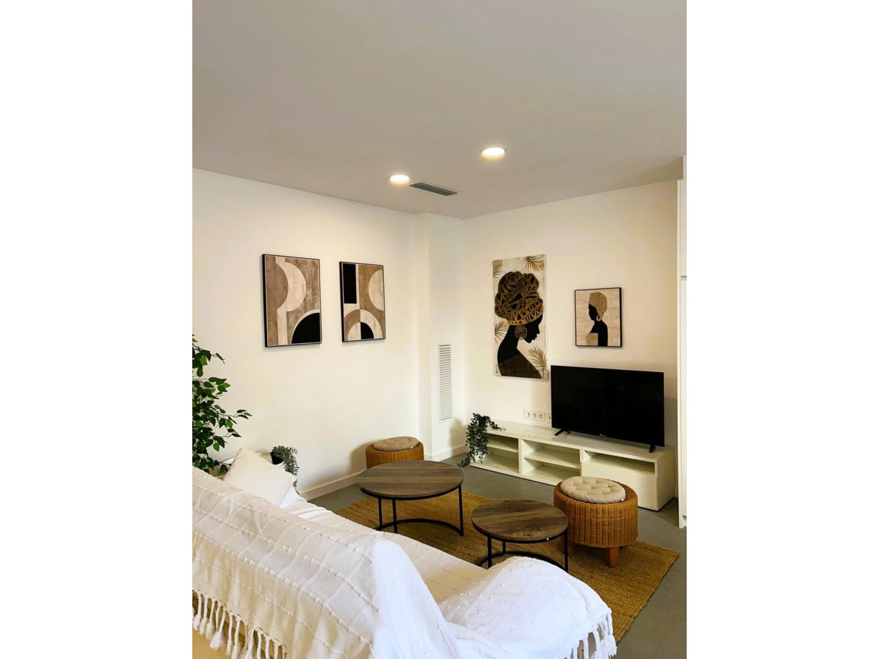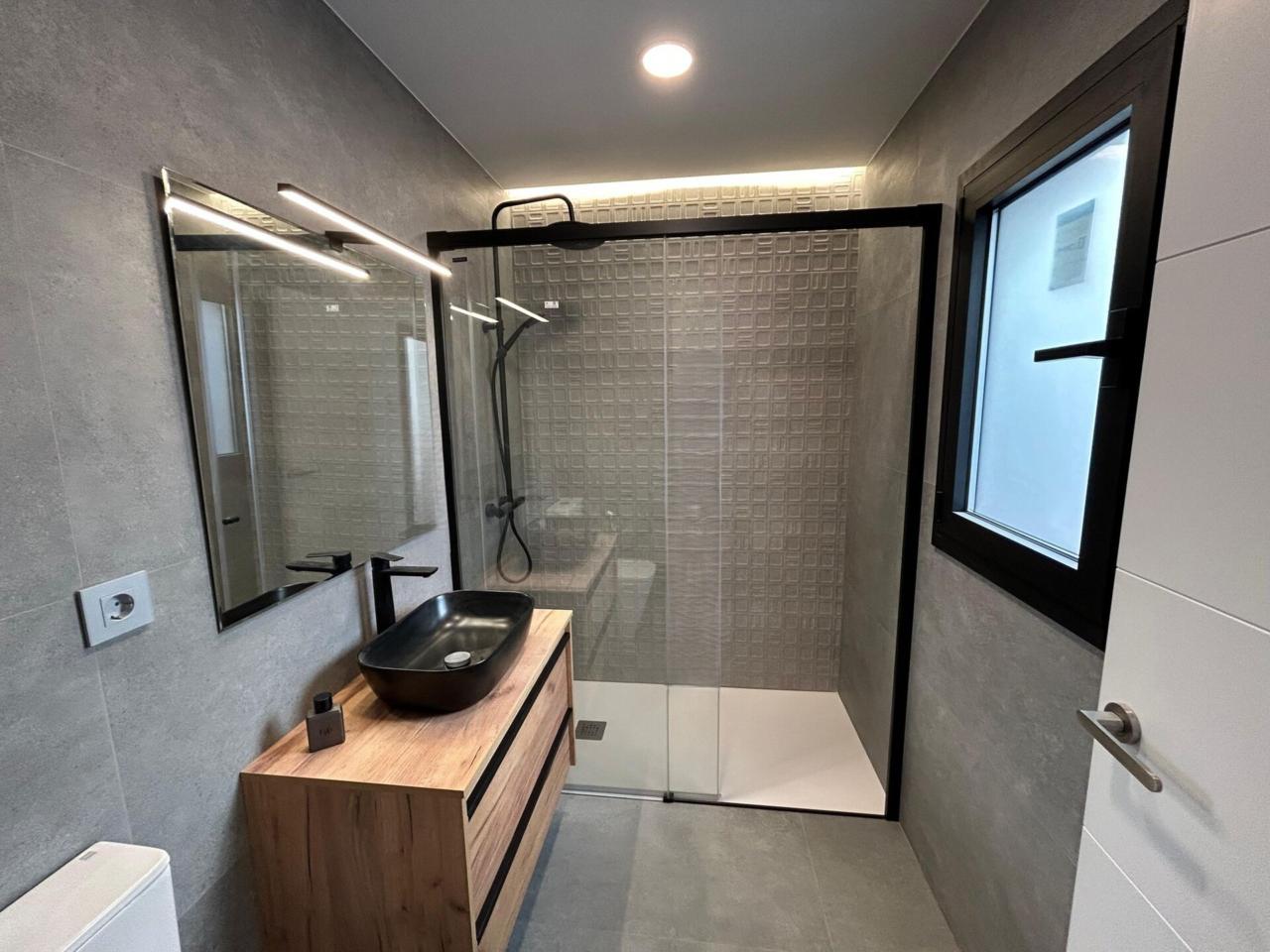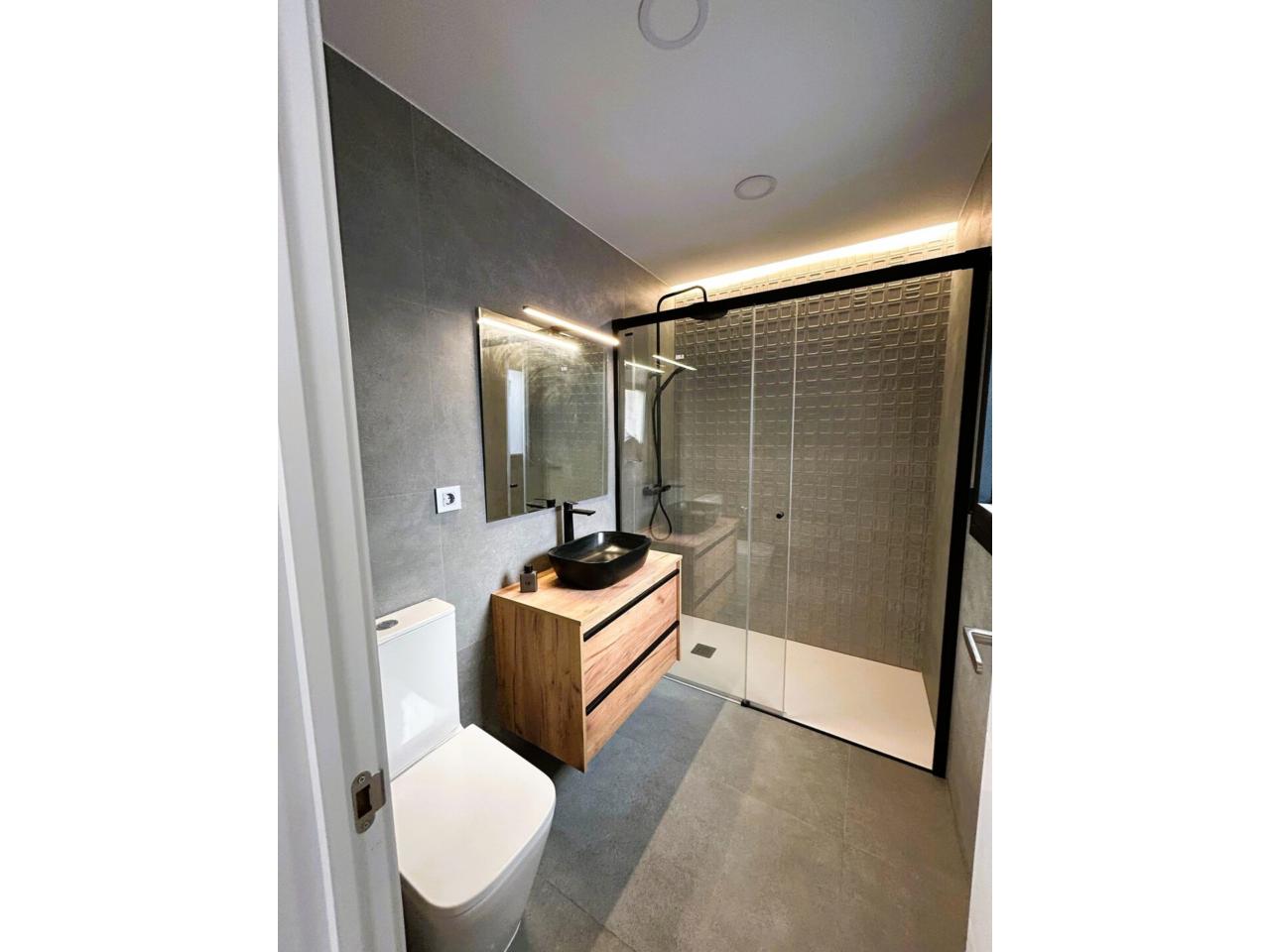 planta Baixa, disposa de 100 m², tenim 3 dormitoris (2 dobles) un bany de diseny amb plat dutxa, anem al menjador i tenim una cuina integrada de uns des del qual accedim al pati de 10 m², pel qual pugem mitjançant unes escales a la part superior de la casa, on trobem una altra terrassa de 15 m² + un estudi. per desconectar (tipo teletraball, despatx sala de jocs etc .