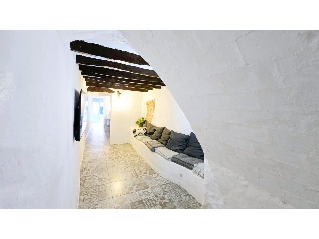 La casa esta mejor que nueva que de distribuye en cuatro plantas y cuenta con 4 habitaciones todas de matrimonio que te hace revivir el encanto del pasado con sus vigas de madera preciosas y 2 baños de diseño con platos de ducha. totalmente de diseño . El interior ha sido diseñado para el confort: Entramos en la casa y nada mas entrar uhaau un hall precioso en la planta de acceso, encontrarás un acogedor salón con sofá de obra y una zona de bar. salida a la joya tambien del patio de 50m² rectangulares con barbacoa toldo y al final de todo una pequeña piscina para relajarte en verano.